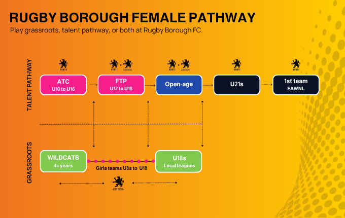 Rugby Borough FC operates a joined-up female football pathway, giving players the opportunity to play grassroots, talent pathway, or both.